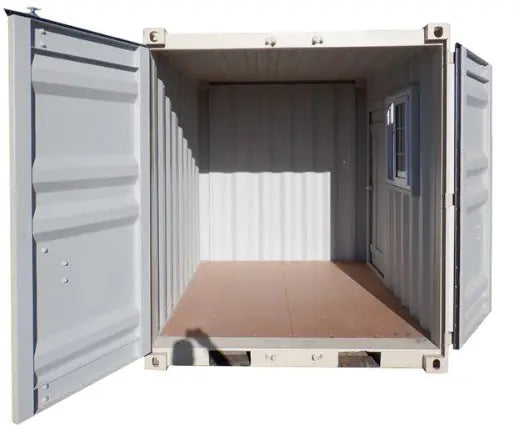 Ce petit conteneur d'expédition cubique de 8 pieds est très polyvalent. Il est doté de deux compartiments inférieurs pour faciliter les manœuvres avec un chariot élévateur, d'une construction 100 % étanche pour un rangement sécurisé, d'une porte à enroulement et d'une fenêtre pour plus de confort. Sa durabilité et sa polyvalence le rendent idéal pour le camping, les laboratoires universitaires et les ateliers de courte durée. Ce conteneur offre une solution pratique pour de nombreuses situations.