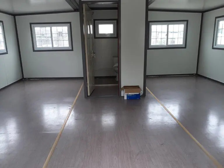 Cette maison préfabriquée mobile extensible CAEL est la solution idéale pour ceux qui recherchent un hébergement temporaire ou un espace de bureau. Grâce à ses toilettes intégrées et à sa taille compacte, cette maison mobile est facile à déplacer, idéale pour les personnes voyageant fréquemment. Son montage et son installation faciles en font un excellent choix pour tous ceux qui recherchent un espace de vie confortable et pratique. Que vous recherchiez un hébergement temporaire ou un espace de bureau mobile, cette maison mobile CAEL est la solution idéale. Nous sommes fiers de vous proposer des entrepôts/bureaux mobiles de différentes tailles. 19 pi x 20 pi et 19 pi x 40 pi .