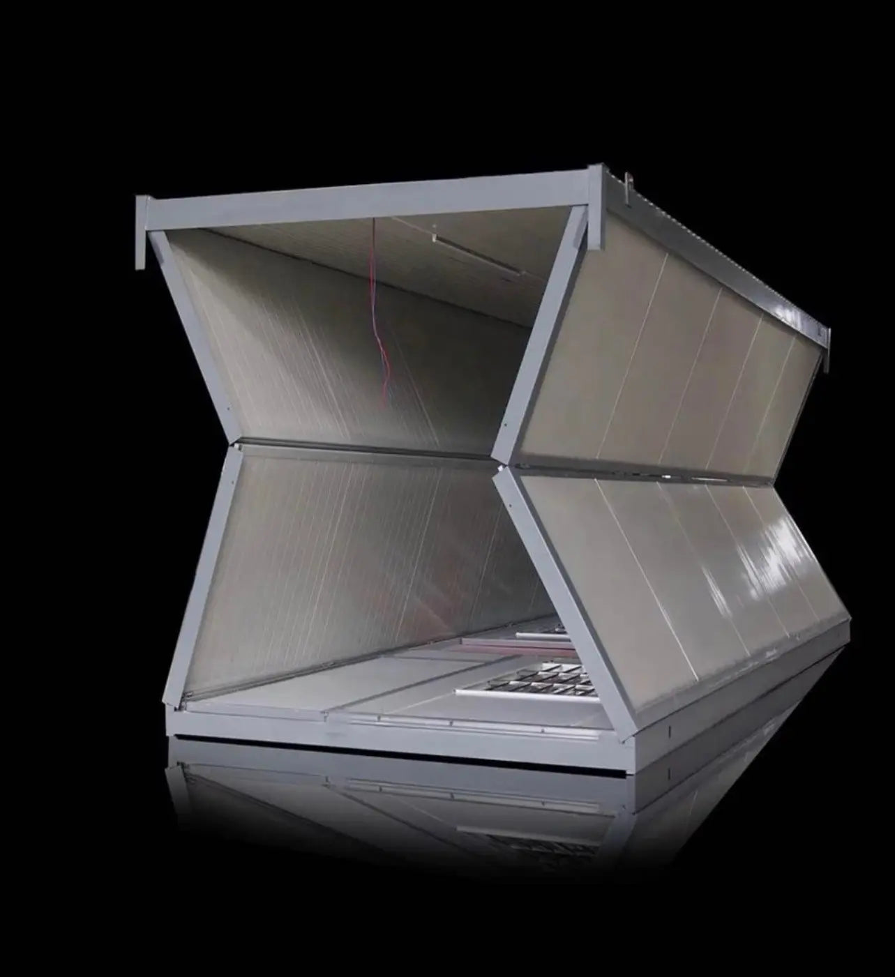 - Construction en acier galvanisé et fibre de verre.