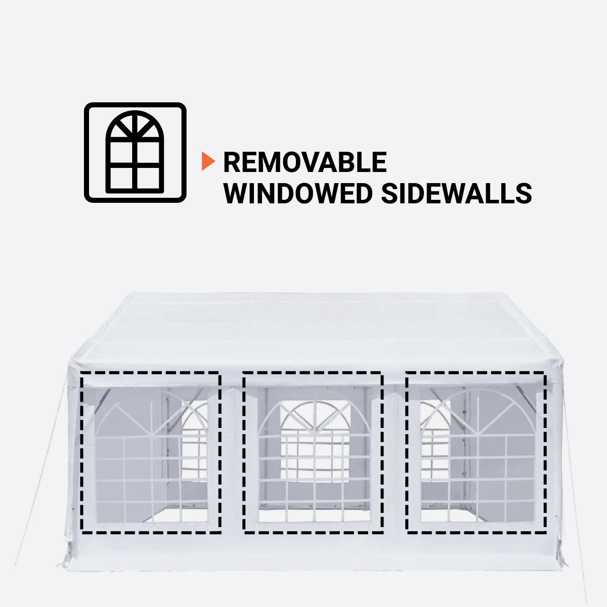 - Removable sidewalls with transparent windows provide an elegant appearance and can be adjusted for ventilation and layout flexibility