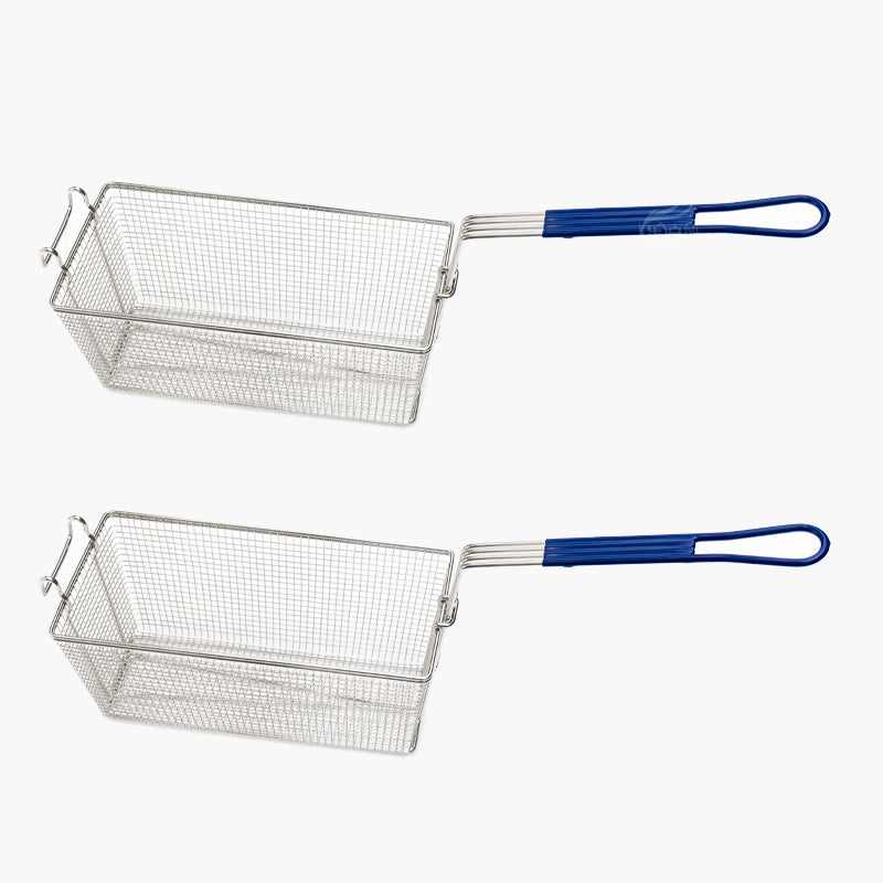 - Chromed fryer basket with heat-resistant plastic-coated handle